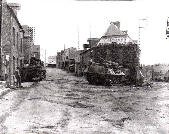2 août 1944, Tressy sur Vire est libérée par la 30th Infantry Division et la 2nd Armoured Division. Un TD M10 et un M5 Stuart ont pris position à l’intersection de la D13 et de la D18 au nord-ouest de la ville. Si la commune est libérée, les GI’S restent vigilents car l'ennemi est toujours présent.