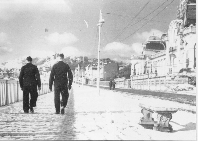 Des soldats allemands se promènent sur le bord de plage à hauteur du casino Marie-Christine durant l’hiver 1941/1942.