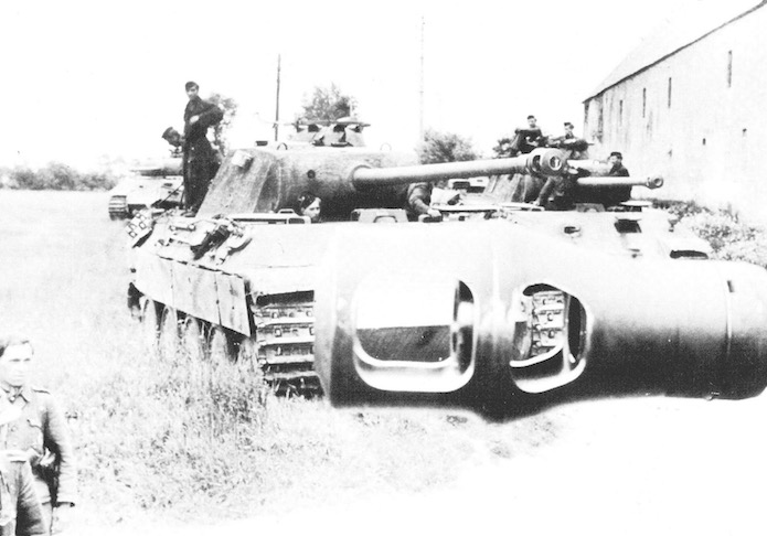 Les chefs de chars se sont rassemblés pour étudier le plan d’attaque. Le Panther du premier plan baptisé « Cristel » est un hybride : tourtelle d’Ausf.A et caisse d’Ausf.D. Le deuxième Panther, un Ausf.A porte le prénom de « Hesla ».