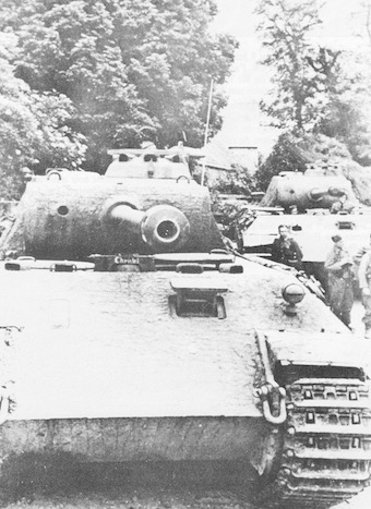Les Panther Ausf . A du Pz.Lehr.Rgt. 130, se regroupent avant l’attaque dont l’objectif est Bayeux.