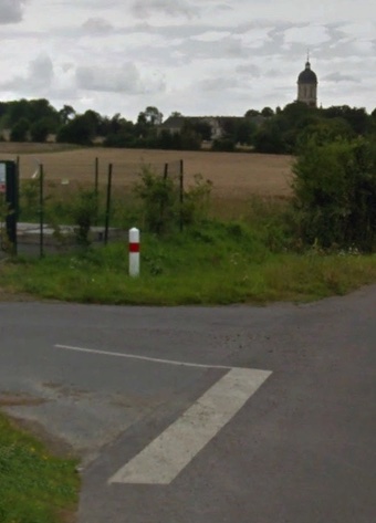 Un Sd.Kfz 251 Ausf.D recouvert de branchages en vue d’échapper à l’aviation alliée stationne au milieu de carrefour. Un side-car s’apprête à quitter le lieu. Les soldats ont encore le sourire. Pour eux, il ne fait aucun doute que l’invasion alliée sera repoussée. Cet optimisme sera de courte durée, à peine démarrée, l’attaque sera annulée face à la pression canadienne. En arrière-plan, on distingue l’abbaye de Mondaye.