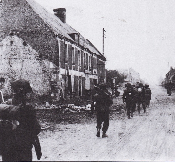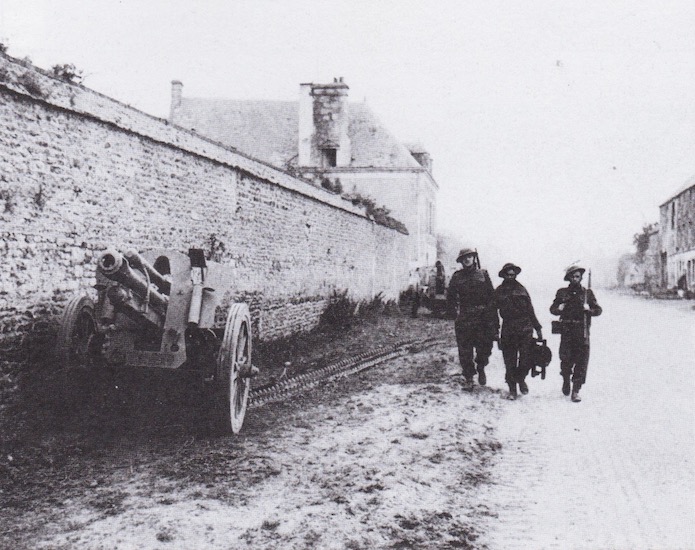 Les troupes britanniques remontent la rue principale du village.