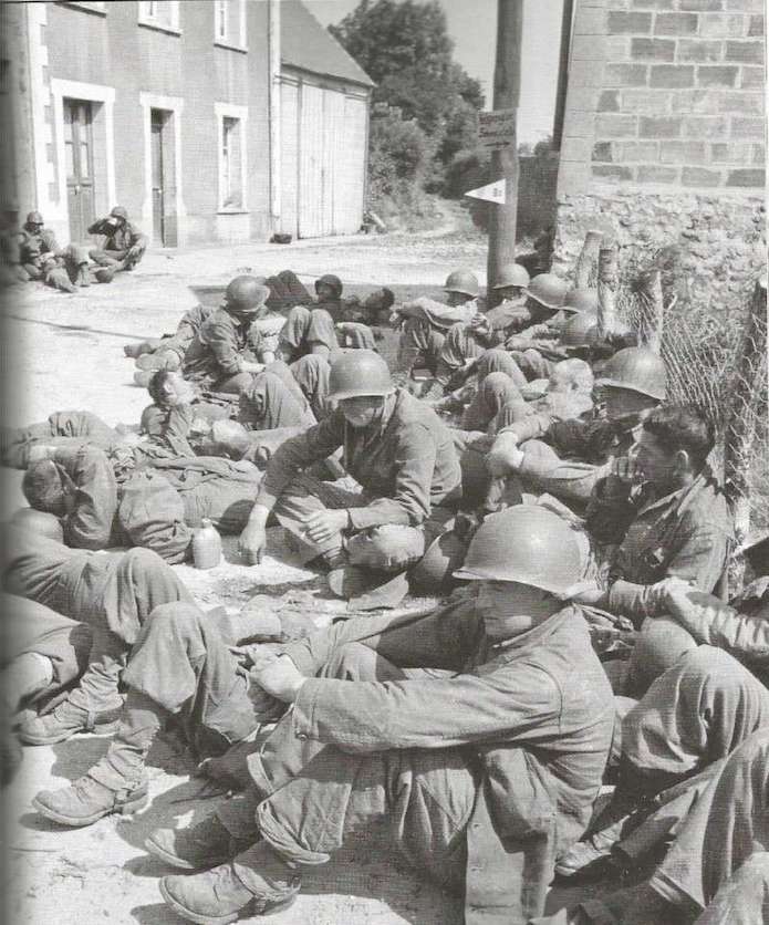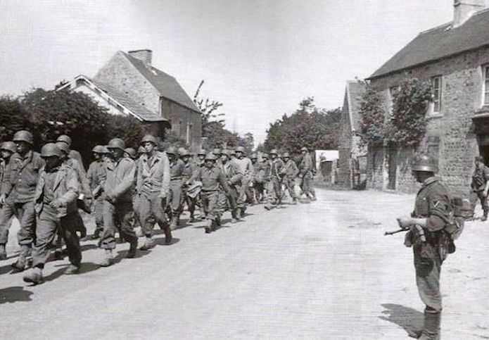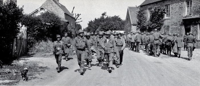10 juillet 1944. Une colonne de prisonniers de guerre américains "Kriegsgefangeners" appartenant principalement de la 90th Infantry Division traverse la localité. Ces soldats ont été capturé lors de la bataille du mont Castres et de ses environs.