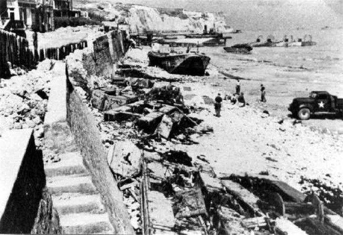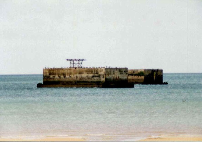 Deux Mulberry furent construits un devant Arromanche dit " Mullberry B " et un devant Saint-Laurent dit " Mulberry A ". La terrible tempête du 19-22 juin détruisit entièrement le Mulberry A.