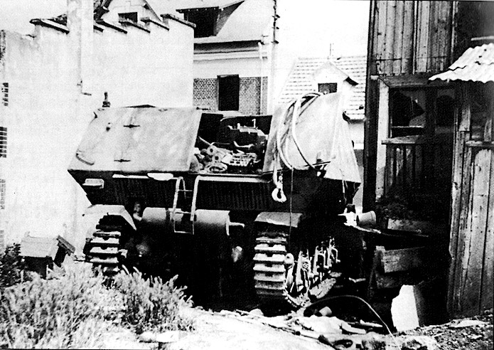 Dans un espace entre deux maisons faisant face à la boulangerie, un Panzerjäger 7,5cm Pak Auf. Panzerkampfwagen 35 H (f) de la Sturmgeschütz-Abteilung 200 a été abandonné suite à une panne. Un câble de remorquage est encore présent enroulé autours de la trappe arrière droite.