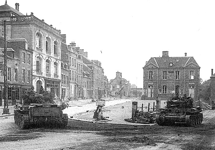 17 août 1944, des chars britanniques « Cromwell » traversent Vassy et foncent vers Falaise.