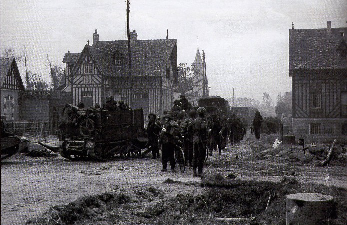 L’infanterie portée débouche de La Brèche d’Hermanville.