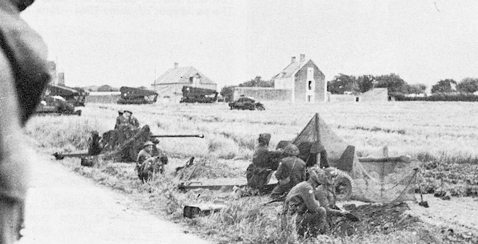 Deux canons anti-char de 6 Pdr ont pris position au sud du village face à la plaine de Caen. Les Britanniques s’attendent à une riposte blindée allemande