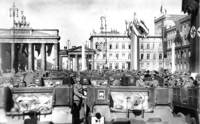 Ces engins participent probablement à un défilé sur l’avenue Unter den Linden, devant Hitler, à l’occasion de son anniversaire.