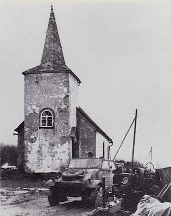 Les artilleurs américains avaient installé ce canon antichar devant l’église.