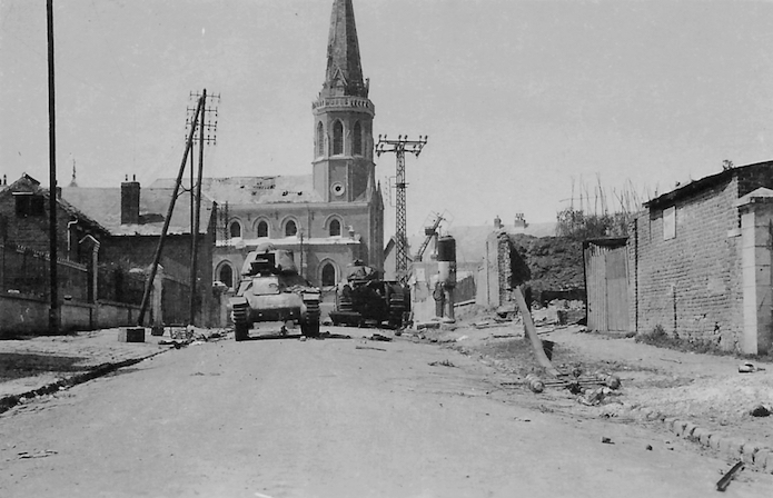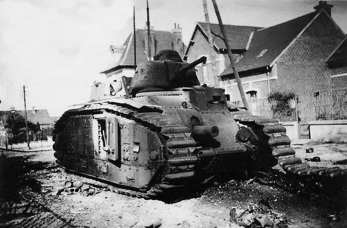Un char B1 BIS déchenillé et un char H ont été perdus dans Saint-Simon lors de l’attaque lancée par la 2e DCR depuis le canal Crozat dans le flanc du XIX.AK de Guderian.