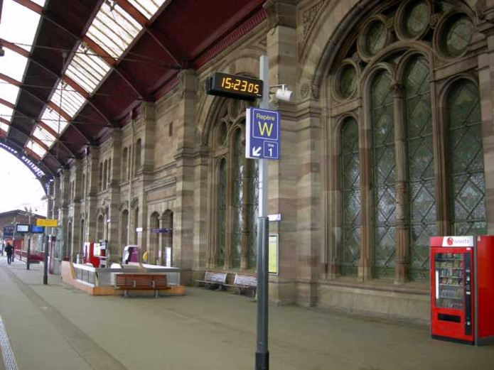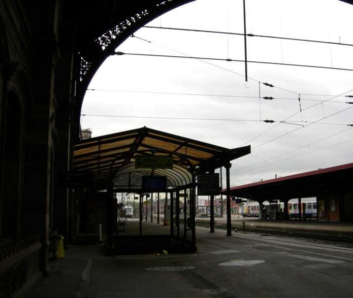 La gare est déjà à l’heure allemande pour preuve la signalétique en écriture gothique.