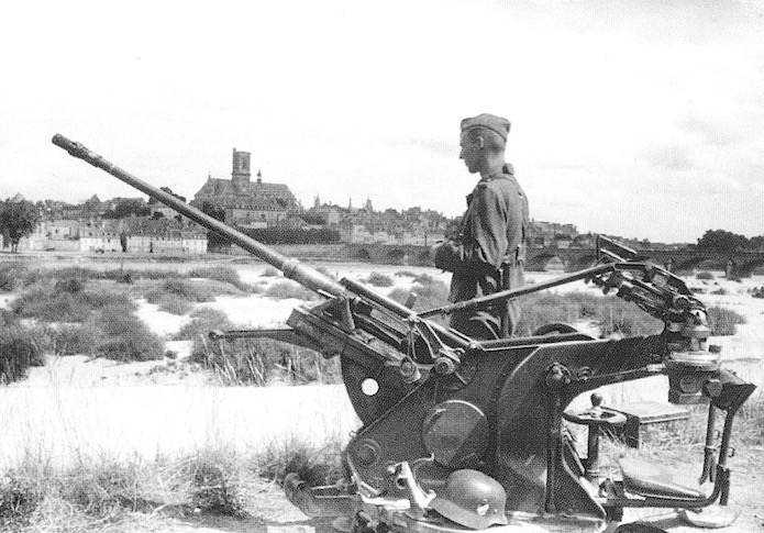 A Nevers, tandis qu’un Feldgendarme règle la circulation sur le pont principal, un canon Flak de 20 mm a été mis en batterie non loin du pont. Les Allemands semblent encore craindre des attaques aériennes provenant de l’Armée de l’Air dont la majorité des escadrilles survivantes à l’hécatombe de la bataille qui vient de voir l’effondrement total de l’Armée française se sont retirés dans le sud de la France.