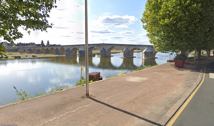Le 17 juin, à 20h15, le génie français fait sauter le pont. Des unités sont bloquées au nord de la Loire, avec un matériel considérable. Ici, un char Renault R-35 a été basculé dans le fleuve. A l’arrière-plan de la photo, on peut voir que le génie allemand a déjà réparé la brèche.