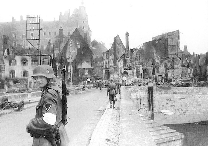 Le 18 juin, vers 9h00, les Allemands passent le pont et occupent les premières maisons du quartier du Berry. Dans l’espoir de contrer les groupes de combat allemands, l’artillerie française tire sur la ville, ajoutant encore aux destructions. Le lendemain, les défenseurs français se sont retirés et les Allemands réparent le pont.