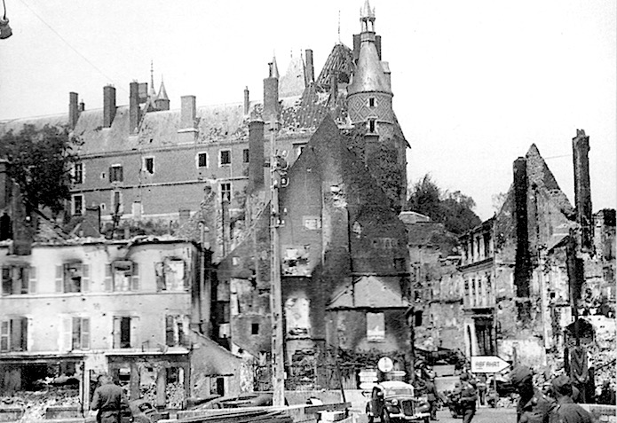 Au soir du 17 juin, les Allemands entrent dans Gien. Dans la ville le spectacle est dantesque ; des embouteillages, une foule prise de panique qui se presse sur les quais, près du pont des immeubles en feu.