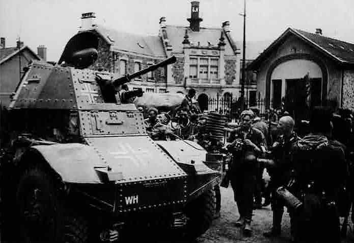 Des AMD 178 Panhard ont été capturé lors des combats antérieurs. Elles font le bonheur des unités de reconnaissance. Elles sont rapides et équipées d’un canon de 20 mm. Repeinte en feldgrau , elles abordent de grandes croix balkaniques afin d’éviter les tirs fratricides.