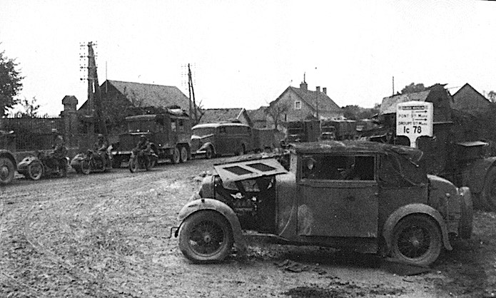 Le 15 juin au soir, les éléments de tête de l’IR 75 de la 5.ID capturent intact le pont enjambant la Seine . Ce pont est primordial pour les unités françaises se repliant vers le sud. Un des axes de retrait est coupé. Un convoi motorisé stationne aux abords du carrefour. On y trouve des éléments motocyclistes, un 6x6 Kfz 61 « Einheits-DieseL » d’une unité de transmissions et un Opel Blitz 3.6-47 type W39 Ludewig d’un état-major. L’épave au premier plan est un véhicule civil : une Amilcar M 3 de 1928.