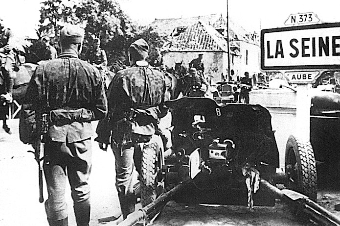 Le General Hoepner commandant le XVI.AK. confie la garde des ponts entre Romilly et Troye aux soldats de la SS-Verfügungtruppe englobées dans sa division. Ils ont pour mission d’empêcher toute unité française en repli de franchir les ponts sur la Seine. Un canon antichar de 37 mm a été mis en position face à l’axe de progression français sur la berge nouvellement conquise. Des unités hippomobiles traversent le pont sous le regard des SS.