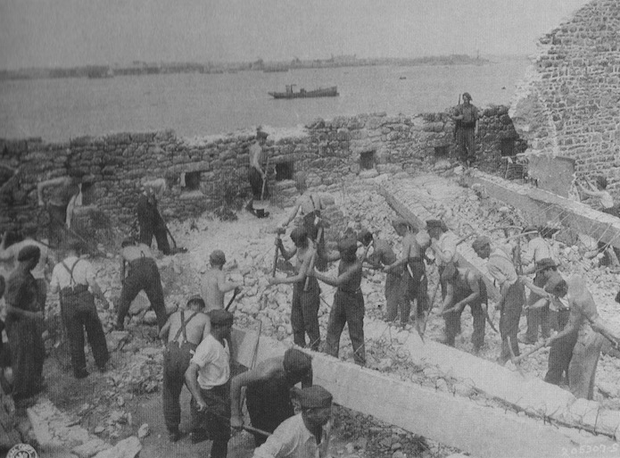 Ce groupe de soixante prisonniers allemands , supervisé par le major Jean Monnet des services secrets français et enquêteur du SHAEF dans la commission des Crimes de guerre, déterre un charnier à Port-Louis, où les Nazis ont enterré des patriotes français torturés, massacrés et assassinés par eux ( 18 mai 1945)
