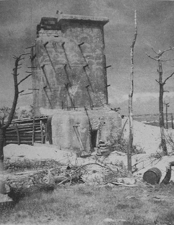 À l'arrière de ces positions se trouve une tour de direction de tir haute de 14 m. Cette tour abritait un télémètre de marine et différents appareils de visée optique. Cette tour et son bunker abritaient également le poste de commandement de la batterie. À proximité était installé un radar "Würzburg See Riese" assurant la détection lointaine des navires. Autour des installations sont disséminés 60 bunkers servant de soutes à munitions, d'abris pour le personnel et de casemates de défense. En 1945, la batterie était desservie par 310 hommes.