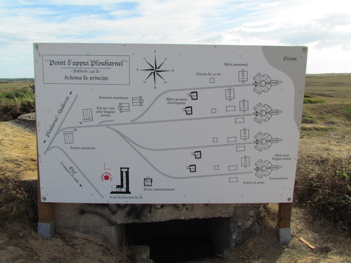 Dans les dunes au début de la presqu'île de Quiberon, au lieu dit le Bégot, fut établi en 1943, la plus puissante des batteries allemandes. Elle pouvait prendre sous son feu l'ensemble de la baie de Lorient, de Belle-Île à Groix. Pour cette batterie, les Allemands récupérèrent sur le champ de tir de l'armée française de Saint-Pierre de Quiberon, trois canons Schneider de 340 mm montés sur des affûts sur voies ferrées. Ces canons dataient de 1912 et étaient utilisés durant la Grande Guerre par l'armée française. Pour installer les canons, les Allemands réalisèrent quatre cuves en béton de 36 m de diamètre. De chaque côté de la cuve étaient placés deux abris pour les munitions. Les canons furent installés dans les cuves après démontage des trains de roulement. Chaque canon avait un poids de 164 tonnes. Sa longueur totale était de 19,50 m dont 15,30 m pour le tube du canon. La portée maximale était de 44400 m et l'obus pesait 432 kg. Contrairement aux autres batteries, ces canons n'ont pas été protégés par des bunkers en béton.