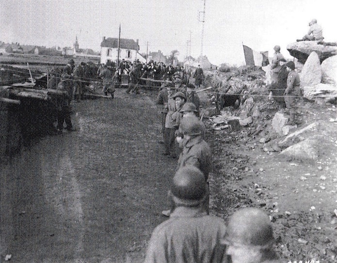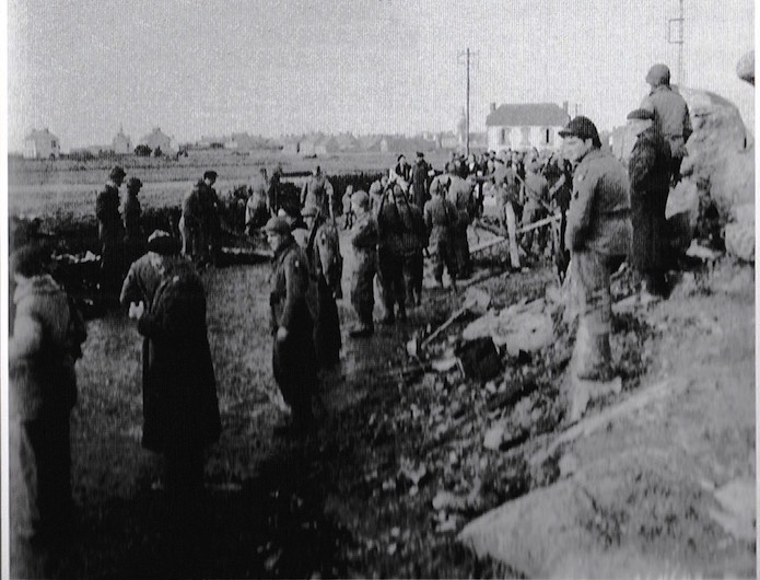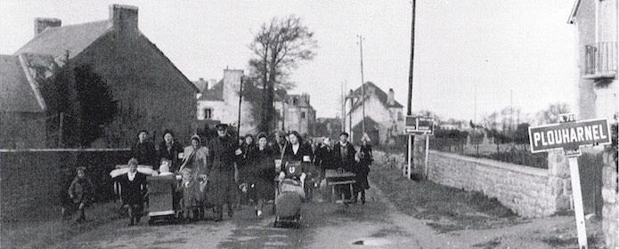 Le 1er février 1945, un groupe de réfugiés ayant quitté Quiberon, sort de Plouharel et se dirige vers Carnac.