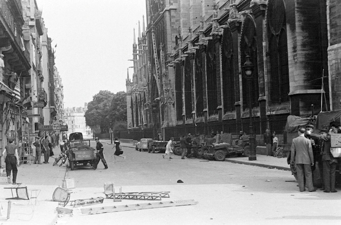 Libération de Paris, rue du Cloître-Notre-Dame, août 1944