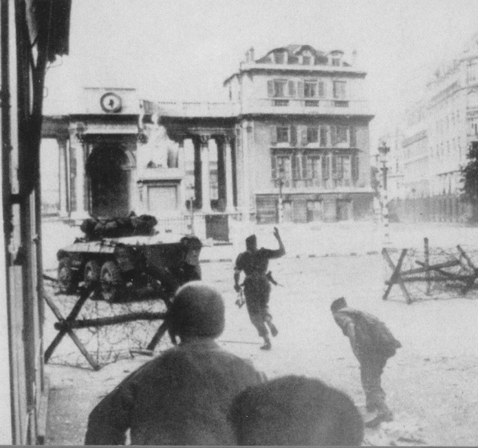 Nous sommes à l’intersection de la rue de Grenelle et de la rue de Constantine. L’infanterie soutenu par les blindés progresse dans la rue de Constantine.