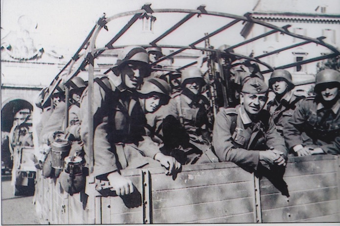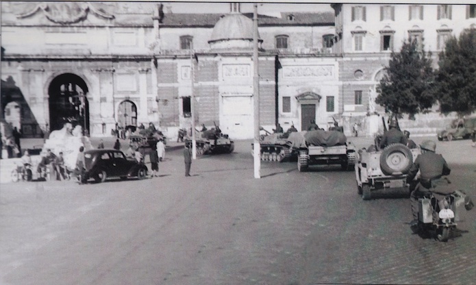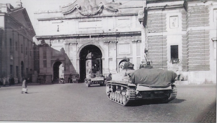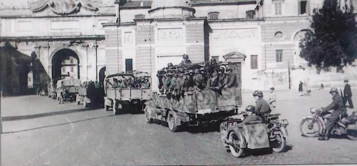 La Kampfgruppe Dieterichs s’ébranle le 22 janvier, avant de rejoindre le front, passe par Rome et défile dans le centre-ville, de la Piazza Barberini jusqu’à la Piazza del Popollo.