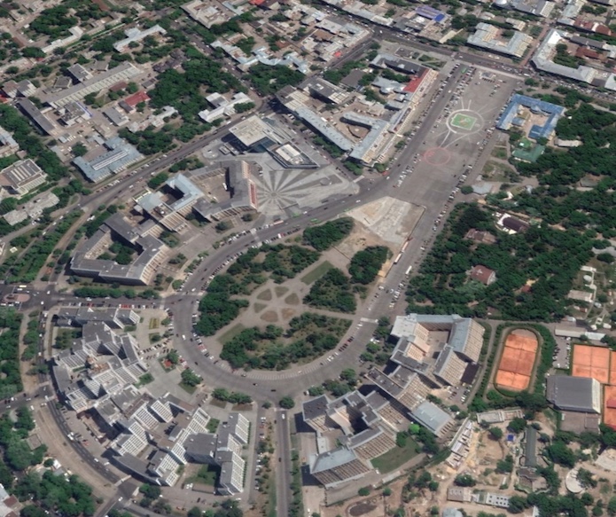 La Place Rouge avec ses immeubles qui constituent les premiers gratte-ciel construits en Urss dans les années vingt.