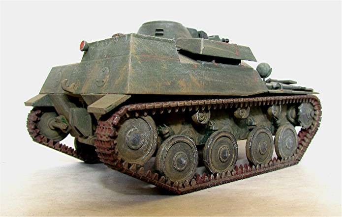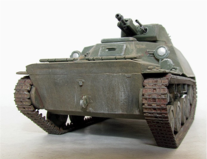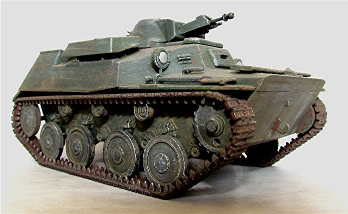 Fin 1938, la Zavod 37 lance l’étude du prototype 010 destiné à remplacer les T-37 et T-38 , considérés comme obsolètes par l’Armée rouge. Pour améliorer la production, le châssis adopte le principe des blindages inclinés. Les capacités amphibies sont renforcées, notamment en soignant le profil de la caisse et en rendant les trappes étanches. Ainsi, le T-40 peut franchir des rivières à forts courants ou se déplacer sur des mers agité. Pour faciliter les réparations sous le feu ennemi, l’accès au moteur est possible depuis le char. La transmission est positionnée à l’avant. Placé à l’arrière, l’hélice et les deux gouvernails sont protégés contre les éclats d’obus. Le chef de char dispose de trois épiscopes , contre deux pour le pilote. Un compas magnétique permet le navigation dans le brouillard ou de nuit. La suspension se compose, quant à elle, de 4 galets indépendants à bandage de caoutchouc montés sur des barres de torsion, de trois rouleaux porteurs, d’une poulie de tension de chenille arrière et d’un barbotin avant.