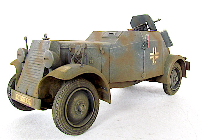 La Kfz 13 était une auto blindée dérivant du châssis d’une voiture civile à six places, l’Adler Standard . L’engin répondait à un appel d’offres lancé au cours de l’année 1932 par le Haut Commandement allemand. Dès 1934, elle apparut en relativement grand nombre sous la désignation d’auto blindée moyenne Kfz 13 . La base ne comportait pas de radio. Elle servit dans les régiments de cavalerie jusqu’en 1937, l’année où elle céda la place à de nouvelles autos blindées à quatre roues Daimler-Benz, de Berlin-Marienfeld, fut le maître d’oeuvre pour la production des voitures , les caisses blindées étant fournie par Deutsche Edelstahl, de Hanovre.