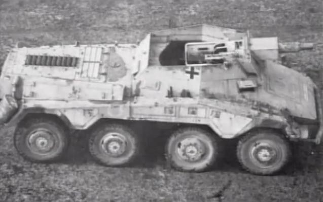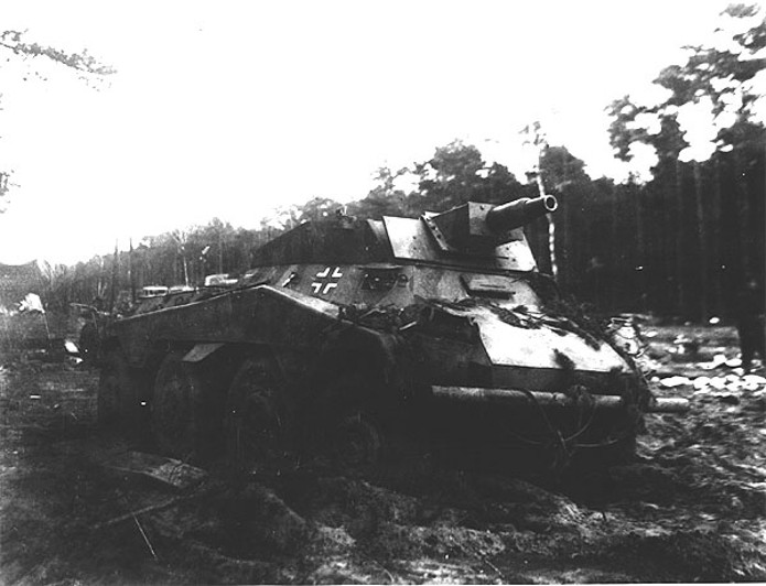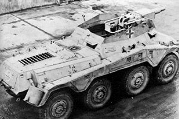 Le SdKfz 234 (Sonderkraftfahrzeug 234) était un véhicule blindé à 8 roues. Mobile et rapide, il était conçu pour des missions de reconnaissance profonde. Pour cela, il était équipé de deux postes de conduite, un avant et un arrière. Cette particularité lui permettait de se désengager rapidement en cas de contact avec l’ennemi.