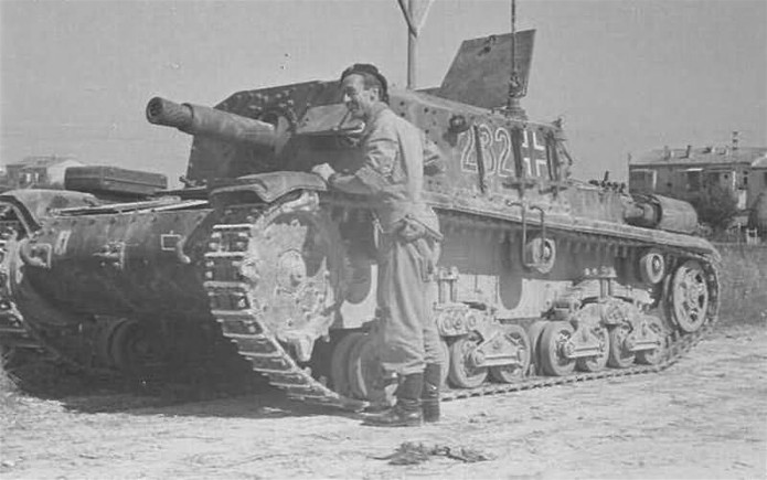 Les Allemands craignant à juste titre un revirement des troupes italiennes en faveur des forces alliées, désarmèrent rapidement l’armée italienne et s’octroyèrent matériels et armements en vue d’une utilisation contre leurs anciens propriétaires. Après l’armistice, quelques Semovente M40 75/18 se retrouvèrent en petit nombre dans les groupements blindés de la République Socialiste Italienne, la très grande majorité des moyens disponibles étant utilisée par les allemands. Il est alors répertorié sous la dénomination Stug M40 (i). La fabrication des automoteurs 75/18 continua au profit des allemands même après l’armistice et se poursuivit toute l’année 1944. Les engins produits a cette époque (55) apparaissent identiques à leurs prédécesseurs de l’armée italienne, à l’exception d’une modification du barbotin et de la peinture de camouflages.