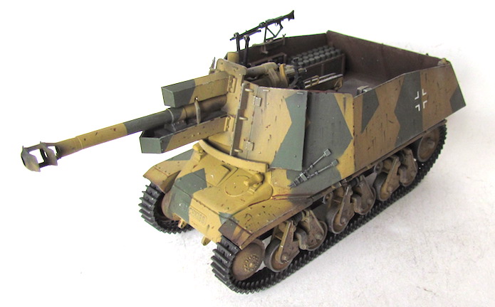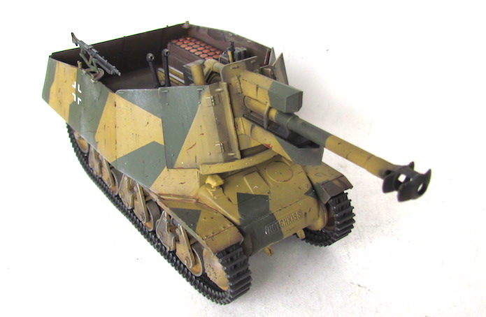 Bien que présentant une silhouette disgracieuse, le 10,5cm LeFH18(Sf.) auf Geschützwagen 39H(f) est un automoteur puissant grâce à sa pièce de 10,5CM. Outre sa fonction d’appui d’artillerie, ll peut jouer un rôle de chasseur de chars. A 2 000 mètres et sous une incidence de 30°, son projectile perforant lancé à 470 m/s, est capable de percer 46 mm de blindage. En soi, cette performance est insuffisante pour pénétrer la cuirasse frontale d’un Sherman; cependant, l’énergie cinétique dragée par l’impact d’un obus de 14 kilogrammes peut mettre hors de combat l’équipage d’un char pesant une trentaine de tonnes.