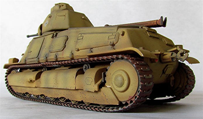 Ces chars seront mis aux normes allemandes. Le tourelleau est arrasé pour installer deux trappes d’évacuation et le char est doté d’un poste radio Fug 5 de 10W.
