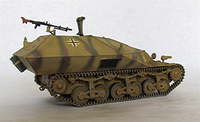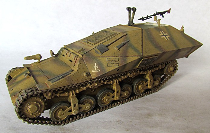 Juin 1940, sous les coups de butoir des forces allemandes et malgré le sacrifice admirable de nombreuses unités, l’armée française plie, recule puis s’effondre. Plus d’un million cinq cents milles combattants prendront le chemin de la captivité. Sur le terrain, d’immenses quantités de matériels plus ou moins sabotés et/ou détruits tombent aux mains de l’ennemi. Chars, chenillettes de ravitaillement et de transports, blindés à chenilles et à roues et un immense parc automobile sont rapidement inventoriés, classés et intégrés dans la Wehrmacht. Une petite chenillette, le " Lorraine 37 L " va attirer rapidement l’attention des Allemands. Produit à 400 exemplaires pour l’armée française, environs 300 exemplaires tombèrent aux mains de l’ennemi. Ce véhicule, à l’origine, un tracteur de ravitaillement en service dans l’armée française, se verra rapidement transformé en canon automoteur ou en chasseur de char par l’ajout d’un canon antichar ou d’artillerie classique. Pas moins de 6 modèles différents seront construits par les ateliers allemands et équipés de calibre allant de 47 mm à 150 mm en passant par une adaptation d’un canon de 122 mm d’origine russe. Ce véhicule donnera aussi naissance à une version de transport de munitions et à un véhicule d’observation d’artillerie qui sera répertorié dans le catalogue des engins de capture sous le nom barbare de " Grosser Funk-und Beobachtungspanzer auf Lorraine-Schlepper (f) ". Ce véhicule " radio et observation d’artillerie " est construit par le BauKommando Becker à environ 30 exemplaires. Les équipements radio et de télémétrie sont protégé par une casemate anguleuse formée de plaques blindées soudées entre-elles. Deux volets montés sur charnière à l’arrière de la casemate facilitaient son accès. La partie supérieure de la casemate était à ciel ouvert. Ce bricolage original donne à ce véhicule une silhouette particulière étonnamment moderne.