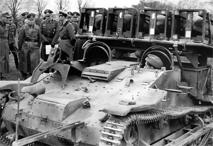 Selbstfahrlafette für 28/32 cm Wurfrahmen auf Infanterieschlepper UE (f)