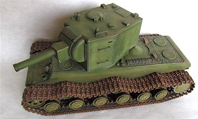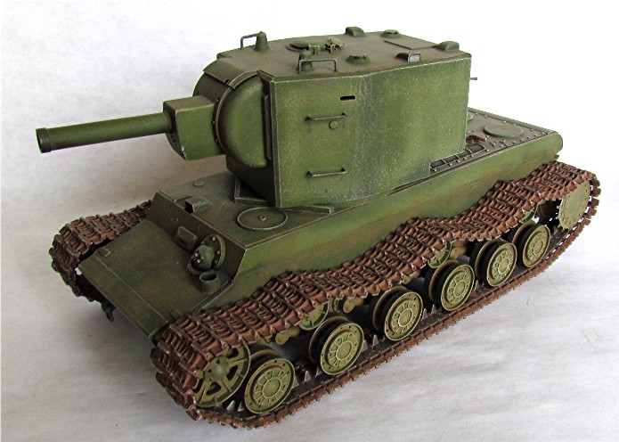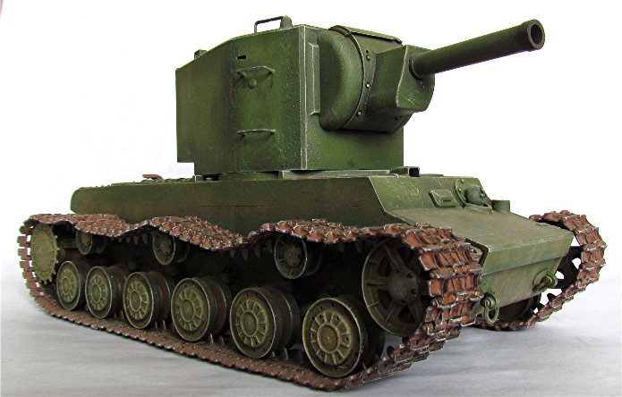 En 1941, lors de la préparation de " Barbarossa ", la Panzerwaffe alignait 3500 chars contre 14 à 15 000 chars soviétiques. La valeur des chars soviétiques est inégale car beaucoup de blindés sont obsolètes ou en panne. Cependant, les Allemands vont découvrir dans les jours qui suivent le déclenchement de l’offensive, la présence de chars modernes comme le T-34 et les chars KV. Ces blindés appartiennent à une nouvelle génération de chars qui a totalement échappé aux services de renseignements. Ces chars de " rupture " sont dotés d’un blindage qui résiste aux antichars allemands. Seul le canon de 88 mm parvient à percer son blindage. Le chars KV et T34 ont commencé à être livrés aux unités frontalières en avril 1941. C’est environ 500 chars de la série KV qui seront ainsi en dotation à l’ouverture des hostilités. Le KV-II est une déclinaison équipée d’un obusier de 152 mm qui fait de lui une casemate ambulante dont le rôle relève plus du soutien d’infanterie que du char de combat. Construit dans les usines de Leningrad, sa production sera arrêtée en 1941. C’est dans le secteur du groupe d’armée " Nord " à proximité des usines de fabrication que les Allemands devront livrer combat contre ce monstre. Tombé en nombre important entre les mains des soldats allemands, il est tout d’abord présenté dans les défilés puis ensuite intégré dans les unités de la Wehrmacht ou il prend la dénomination de (Sturm)Panzerkampfwagen KV-II 754 (r). Conservant ses caractéristiques propres, la modification la plus visible sera l’adjonction en tourelle d’une coupole d’observation de PZ III à l’usage du chef de char. Sur certains modèles, un panier sera installé à l’arrière de la caisse en vue d’un emport complémentaire en munitions. Il sera utilisé dans des missions d’instruction, de maintien de l’ordre et de combat en soutien d’infanterie.