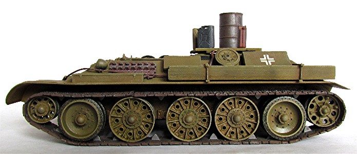 Entre juin 1941 et avril 1945, les forces allemandes capturèrent un nombre considérable de chars russes. Des chars légers comme le T-60 en passant par le T-34 pour finir par la capture dans les dernières semaines du conflit de chars lourds comme le IS-2, tous accrurent le potentiel offensif et défensif des unités de blindés toujours en manque de chars pour cause de destruction ou de panne. Certains chars repeints aux couleurs allemandes par l’ajout d’immenses croix balkaniques furent renvoyés au combat contre leurs anciens propriétaires. D’autres furent convertis en tracteurs d’artillerie, en ravitailleur de munitions, en chasseurs de chars et en chars de dépannage. Le T-34 n’échappa pas à ces transformations. Certains d’entre eux, détourellés furent convertis en chars de dépannage ou berge panzer. La transformation était effectuée dans les ateliers régimentaires par retrait pur et simple de la tourelle. Le puits de tourelle était obstrué par un couvercle en bois muni d’une trappe basculante permettant le passage vers le poste de conduite.