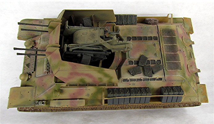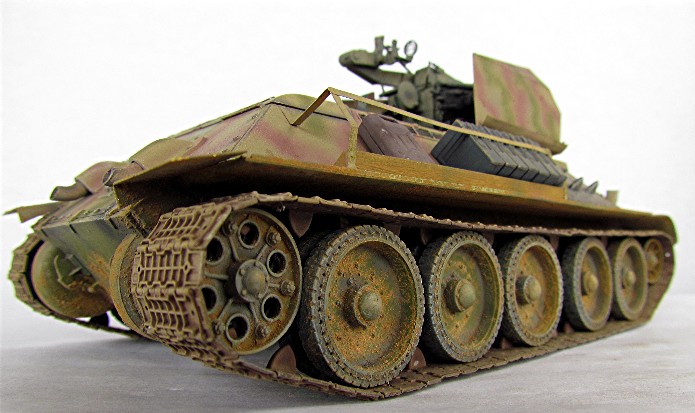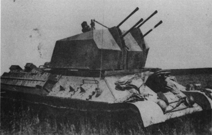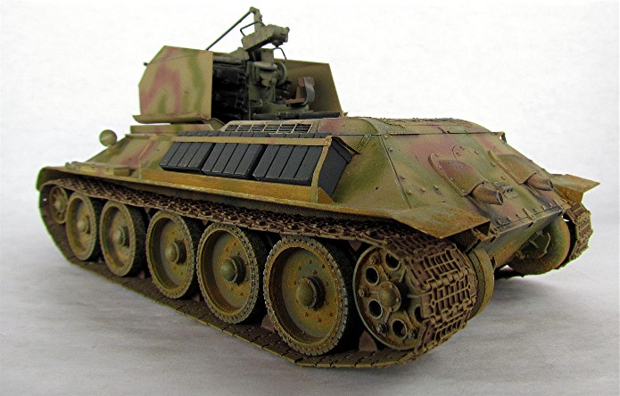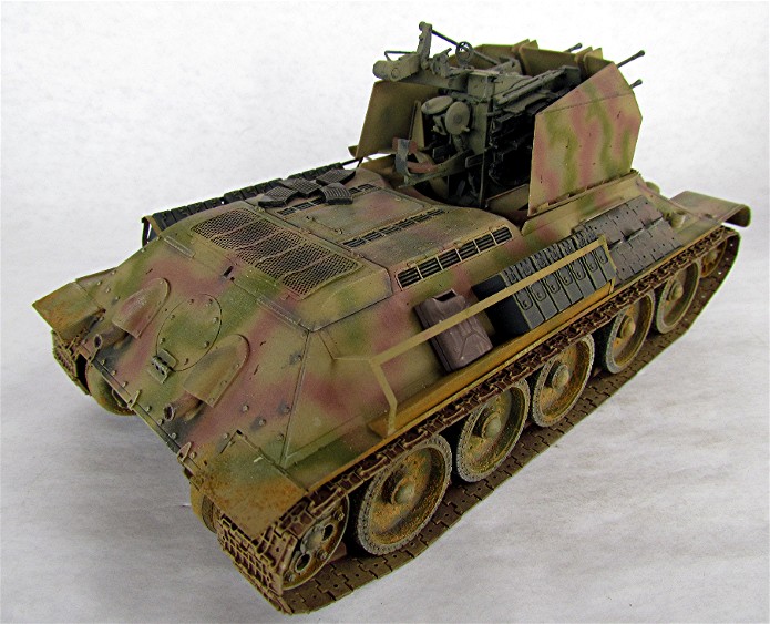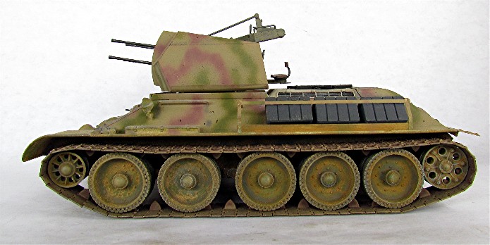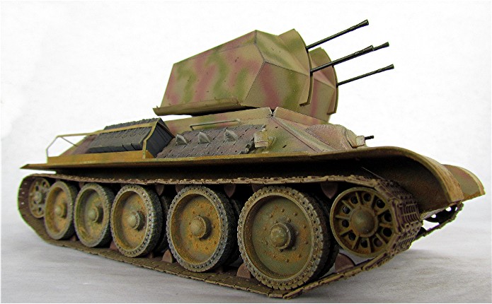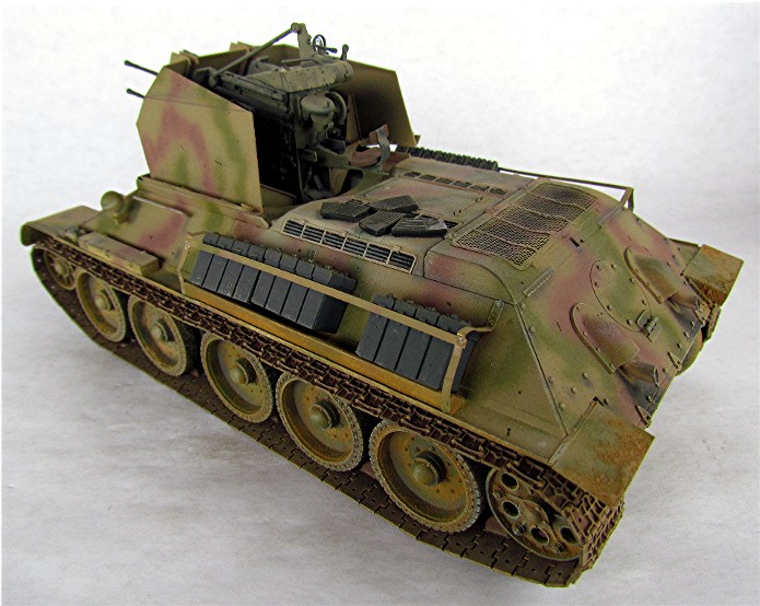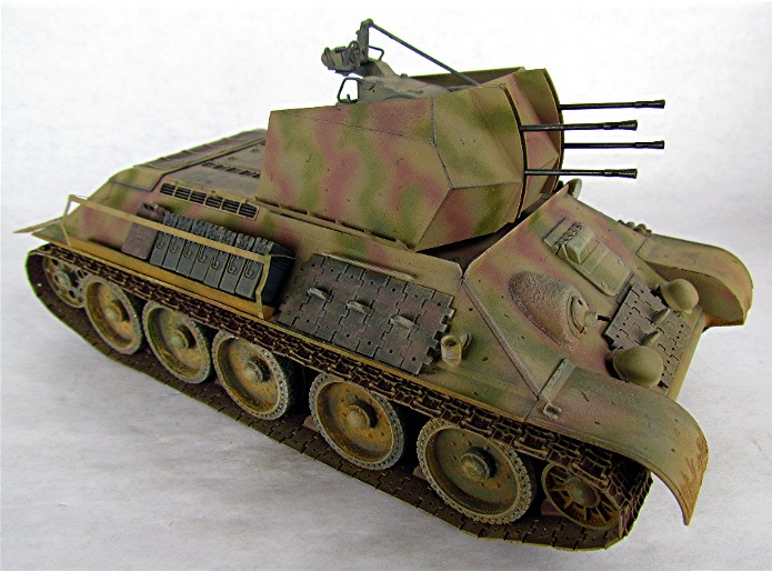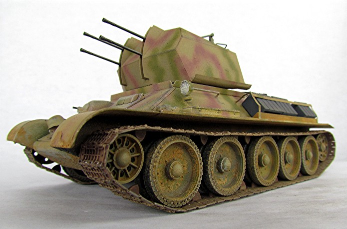 Ce modèle « exotique » est en fait un T-34 auquel les mécanos allemands ont retiré la tourelle pour la remplacer par la pièce de 20mm quadruple Flak vierling 38.