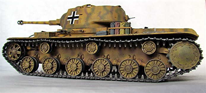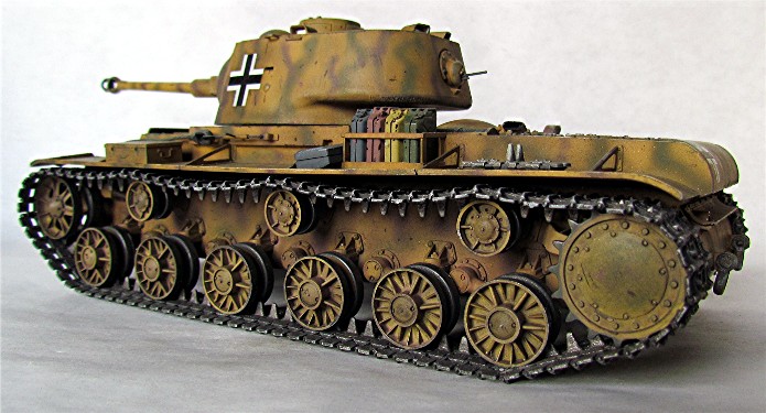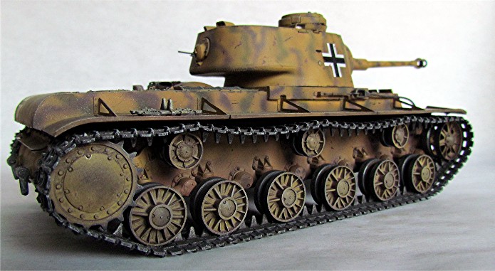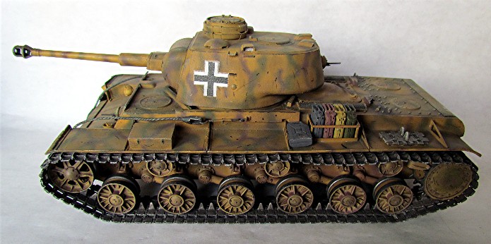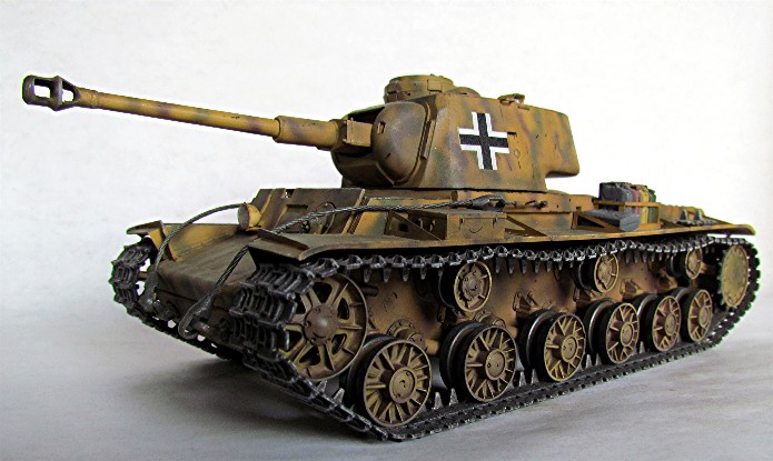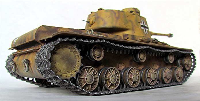 Les Allemands capturèrent un nombre important de chars soviétiques lors de manœuvres d’encerclement. Cers nombreux chars de tous types furent réutilisés au sein de la Panzer Waffe . De nombreux blindés furent réutilisés tel quel avec en ajout d’immenses croix balkaniques en signe d’identification afin d’éviter des tirs fratricides. D’autres subirent des transformations plus ou moins élaboré, allant de l’ajout de simples coffres de rangement à la modification de l’arment principal. Ce « beute KV-1 » fut mis à la sauce teutonique avec l’adaptation d’un canon de 75 mm KwK 40L/43 . Ce char appartient au 204e Pz. Rgt. de la 22e Panzerdivision.