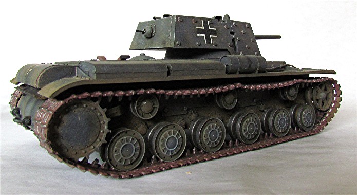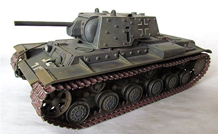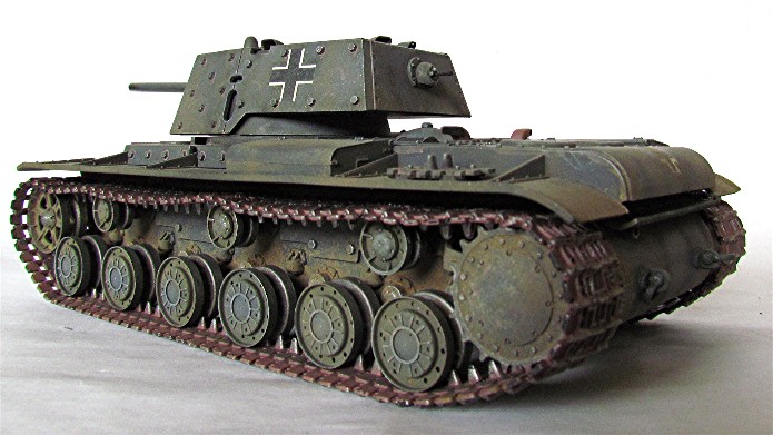 Un espace reste libre entre le blindage originel et la nouvelle plaque, ce qui apporte une protection supplémentaire face aux effets de certains types d’obus perforants. Tous les chars ne sont pas traités de la même façon et il existe des différences d’équipements. Certains blindés reçoivent un blindage complet tourelle et caisse, sur d’autres, le surblindage ne concerne que la tourelle. Souffrant de problèmes de transmissions, ce surblindage, qui fait monter le poids du KV-1 à environ 50 tonnes, aggrave les problèmes qui deviennent catastrophiques. Plus d’un char sera abandonné à l’ennemi pour cause de panne et non pas de destruction. Ce surpoids rend le KV-1 encore moins manœuvrable. Il a aussi un incidence sur le train de roulement, accélérant l’usure des galets avant qui ne résistent pas à l’effort engendré par les 50 tonnes. Une solution par adoption de roues moulées résoudra partiellement ce problème. N’ayant pas donné satisfaction, la production du KV-1 Ekranami cessera début août 1941. Cependant, un certain nombre de chars capturés intacts suite à un abandon pur et simple de son équipage ou relevé sur le champ de bataille après une simple panne intégreront les unités de chars de la PanzerWaffe. Entrant dans la famille des " beute ", ils seront engagés contre leurs anciens propriétaires.