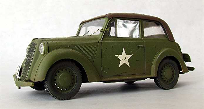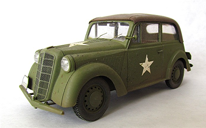 L'Opel Olympia est une petite voiture familiale produite par le constructeur automobile allemand Opel de 1935 à 1940, de 1947 à 1953 et finalement de 1967 à 1970. Cette voiture fut présentée à Berlin en février 1935 au salon de l'automobile, la production démarrant un peu plus tard au cours de l'année. L'Olympia a été ainsi nommé en prévision des jeux olympiques de Berlin de 1936. Avant la guerre, deux versions furent réalisées. De 1935 à 1937, elle avait un moteur de 1,3 litre. Pour la version OL38 réalisée de 1937 à 1940, ce moteur fut remplacé par un de 1,5 litre à soupapes en tête. Elle fut la première voiture avec un châssis monocoque réduisant le poids de la voiture de 180kg. Ce type de construction est aujourd'hui la norme des voitures modernes. Entre 1935 et 1940, plus de 168,000 unités sortiront des chaînes d'assemblage. Les besoins de la guerre firent que cette voiture comme bien d'autres fut utilisé par les différents corps de l'Armée allemande. Certaines de ces voitures furent ensuite capturées et utilisées par les armées alliées.