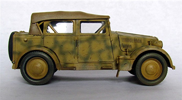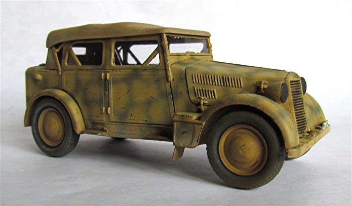 La plupart des véhicules légers utilisés par les forces armées italiennes provenaient des usines Fiat. Parmi ceux-ci se trouvait l’Autovettura Fiat 508 C.CM. Les italiens assuraient que ce type de véhicule colonial avait été conçu tout spécialement pour des terrains difficilement praticables comme ceux d’Afrique du Nord et d’Ethiopie. Connue aussi sous le nom de Fiat 1100 Torpedo Militaire, la Fiat 508 a été le véhicule italien le plus produit durant la Seconde Guerre mondiale. C’est juste avant la guerre que l’Ispettorata della Motorizzazione commanda la construction d’un véhicule léger, simple et robuste, capable d’atteindre de grandes vitesses sur route et de réaliser des performances tout terrain acceptables, le tout pour un prix de revient peu élevé. En conséquence de quoi la firme Fiat avait élaboré la Torpédo 508, qui était le dérivé d’un véhicule civil. La version militaire différait par une hauteur de châssis plus élevée, une diminution du nombre de vitesse et une carrosserie spéciale. Le véhicule, construit en très grand nombre, a connu plusieurs versions entre 1939 et 1945. Parmi celle-ci on trouve un modèle colonial conçu de manière à éviter le sable et l’enlisement dans les terrains mouvants (Modello 1100 Co.)