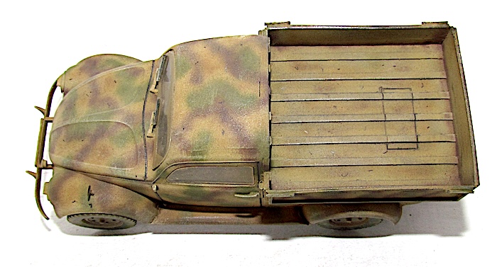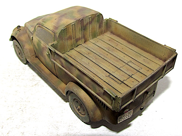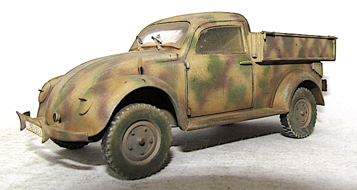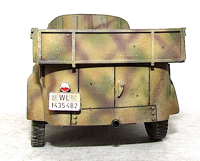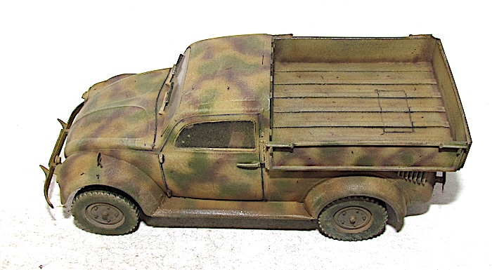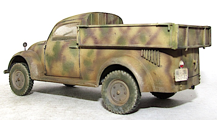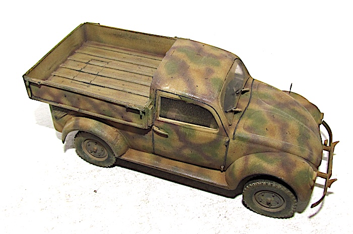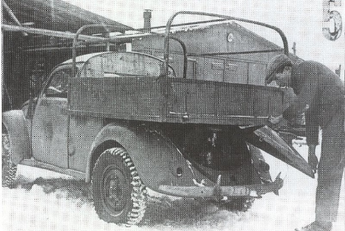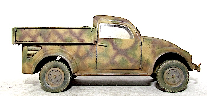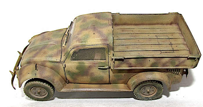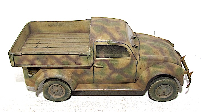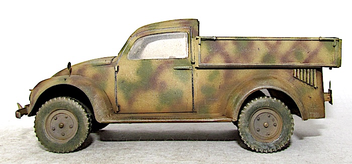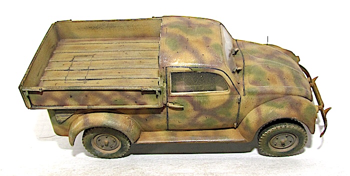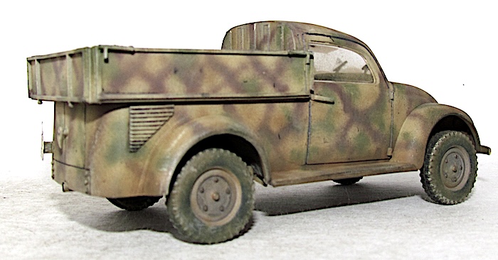 Il s’agit d’une conversion dite « Pritschenwagen » (plateau) basée sur le châssis du Kübelwagen, avec une cabine deux places et une benne arrière.