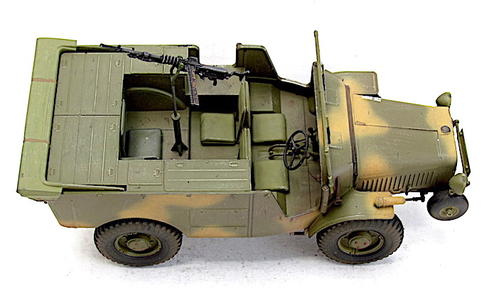 La carrosserie de série, déjà quai définitive sur le prototype hormis sa longueur à réduire de 20cm, comporte une série de coffres pour les munitions et les paquetages, et cinq sièges : deux vers l’avant, deux au dos des premiers orientés vers l’arrière et un cinquième en retrait, face à la route, disposé de sorte que les hommes puissent allonger les jambes. Car le principal inconvénient de tous les tracteurs à faible relief, par ailleurs bien conçus, est leur inconfort, les jambes du personnel étant presque à l’horizontale.