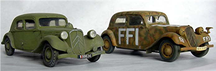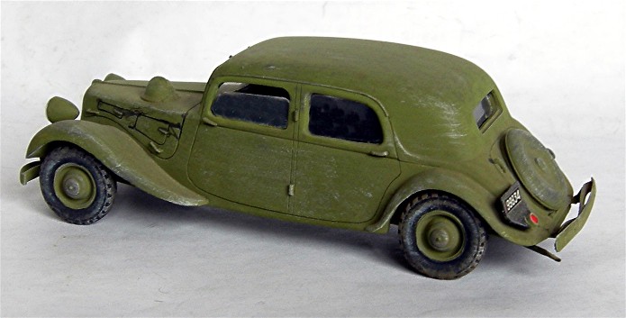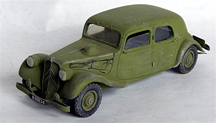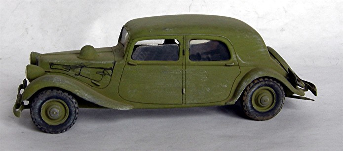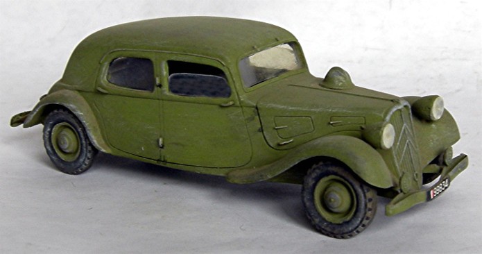Les performances et la polyvalence du véhicule font qu’il est rapidement remarqué par le haut commandement français. La « traction » est mobilisée comme véhicule de liaison et d’état-major. Mai 1940, l’armée allemande passe à l’offensive. En quelques semaines, les armées françaises sont défaites entraînant un exode massif des populations. Les civils les plus riches qui possèdent un véhicule, le chargent de tous les biens familiaux et tentent de s’enfuir vers le sud. Les bas-côtés des routes de France verront ainsi des « traction avant » chargées de malles et de matelas, abandonnées par leurs propriétaires pour cause de pannes ou de manque de carburant. Les militaires français eux aussi abandonneront un immense parc automobile dans lequel on trouvera aussi de nombreuses « traction ». L’occupant sera lui aussi séduit par ce véhicule qui rapidement adoptera la livrée de l’ennemi. Certains officiers utiliseront le véhicule dans sa livrée civile. Un véhicule rencontrera un vif succès, ce sera la version Torpédo de la 11cv qui deviendra la coqueluche des « as » et autres enfants chéris du régime. Avec l’extension du conflit, la « traction » sera présente sur tous les fronts. Des sables de Libye aux immenses steppes de Russie, qu’elle soit utilisée par la Wehrmacht, la Luftwaffe, la Kriegsmarine ou La Waffen SS, elle adoptera toutes les livrées possibles de l’armée allemande. La « traction » sera aussi le véhicule de prédilection de la sinistre Gestapo. Combien de résistants seront enlevés de force sur la voie publique par ces sinistres hommes en imperméable de cuir noir et chapeau. Crissements de pneus, claquements de portière, cris gutturaux et la victime disparaissait vers son lieu de torture et de supplice. Première station d’un long calvaire qui au mieux se terminait dans un camp de concentration.