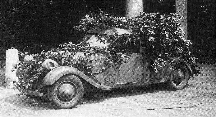 Si dans la mémoire populaire, la JEEP est le véhicule de la Liberté, un autre véhicule mythique représente à lui seul, l’exode, la défaite, l’occupation, la Résistance et la Libération. Ce véhicule est la « traction avant ». Mais pourquoi la « traction avant » ? En 1934, la firme Citroën, malgré le succès de la « Rosalie » est au bord de la faillite. Le 18 avril 1934, elle présente un nouveau modèle automobile dont la silhouette aérodynamique le différencie de tous ses contemporains, mais, l’innovation ne s’arrête pas là, le véhicule est équipé d’une caisse monocoque et surtout d’une «traction avant ». Elle n’est non pas tirée, mais bien propulsée. Malgré des problèmes de jeunesse dus à la conception très rapide et le manque de test de mise au point, le véhicule rencontre un vif succès. Sa production s’étalera de 1934 à 1957 et atteindra 760 000 exemplaires tous modèles confondus (longue, cabriolet et coupé).
